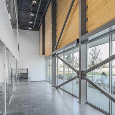 As the Project Designer, Gabriel leveraged the site’s long, narrow proportions to maximize spatial efficiency and minimize resources used. The project was able to utilize non-load-bearing walls at each end of the warehouse with Cross-Laminated Timber (CLT) panels supported by steel columns, allowing for expansive glazing across the entry façade. This approach reduces the building’s carbon footprint while introducing a warm, natural material palette to the interior, creating an inviting and inspiring workspace.